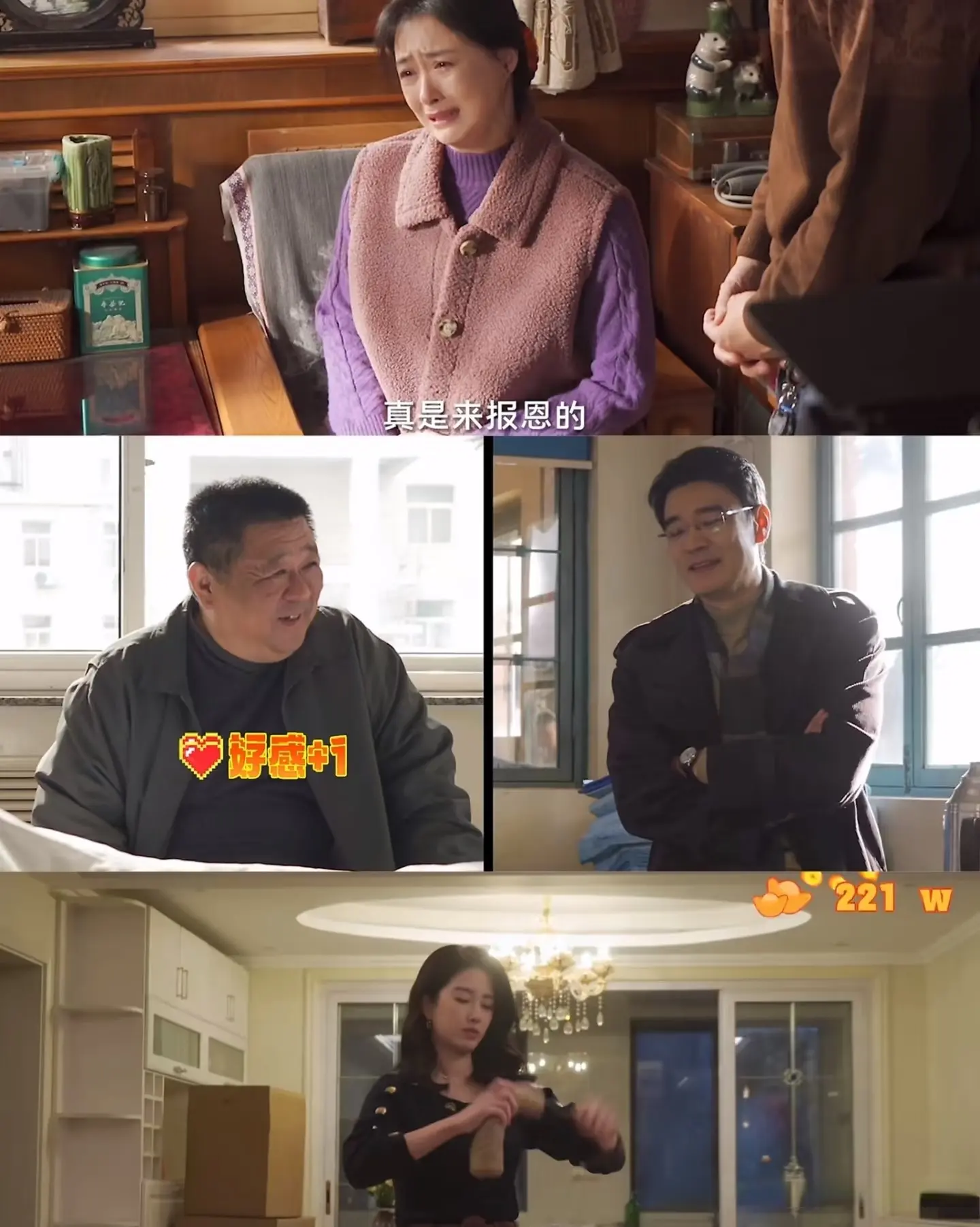 更让人惊喜的是配角阵容,全是实力派,没有一个拖后腿。韩童生、施京明、刘威、徐永革等老戏骨倾情加盟,演技兜底;是安、章煜奇、康可人等青年演员,演绎年轻一代的人生困境。五对子女各有故事,拆迁分钱、赡养老人、中年危机、职场压力,没有狗血的婆媳大战,全是真实的亲情拉扯、利益博弈、温情与背叛,每个人都有秘密与苦衷,群像戏直接封神 。
