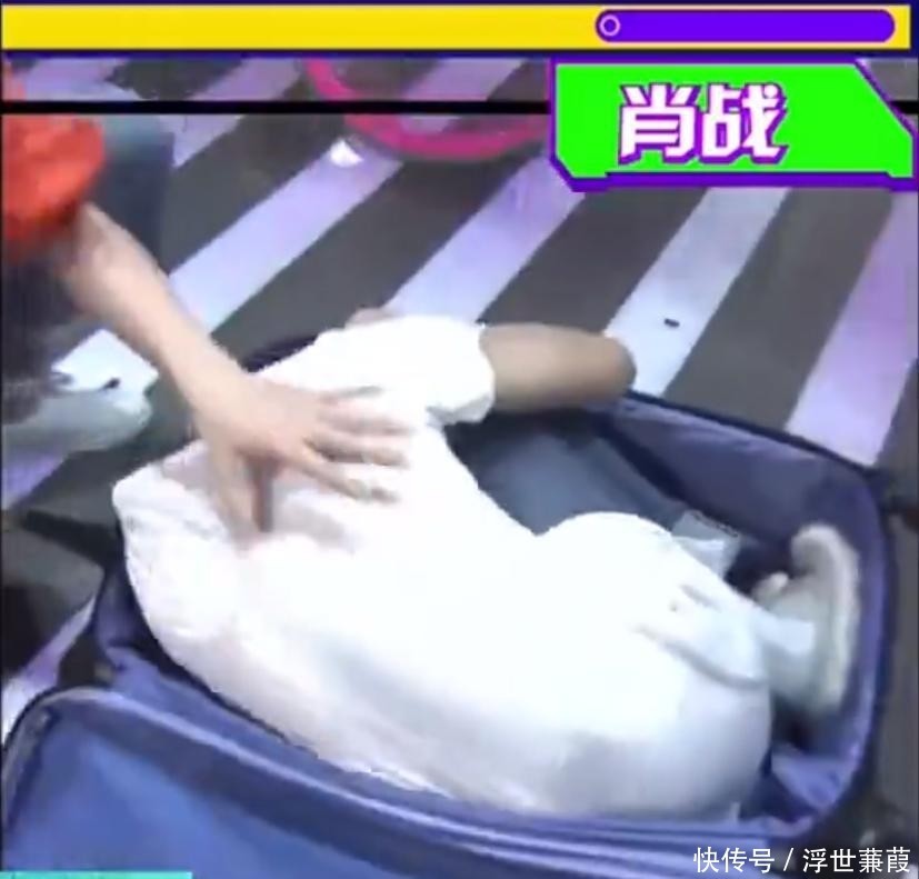 某期节目设计行李箱挑战,身高183cm的他被要求蜷身入箱。