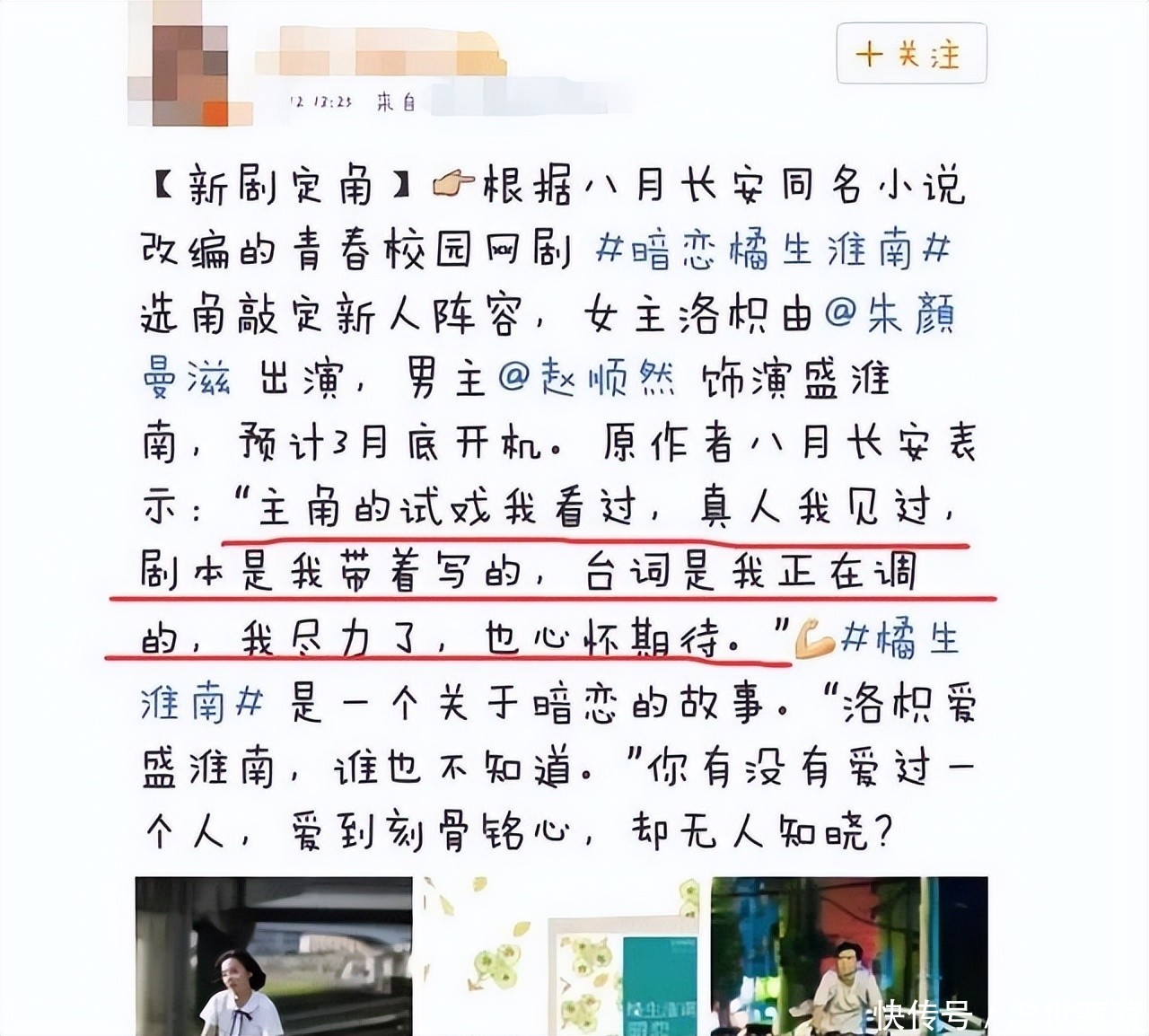 据多方信源证实,他曾争取到一部剧的重要配角;