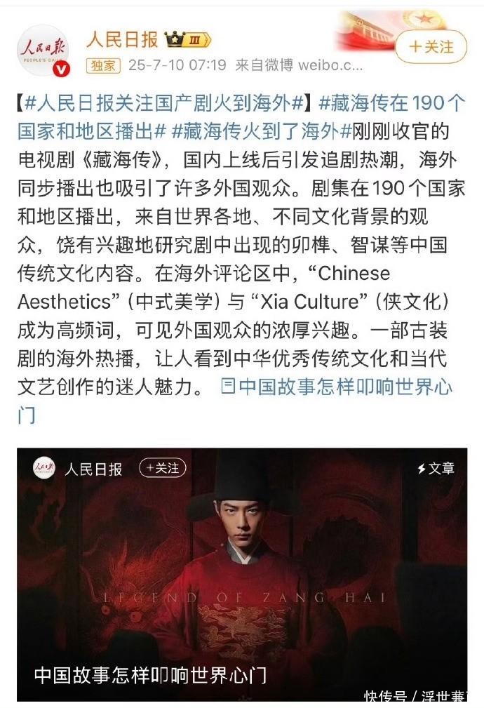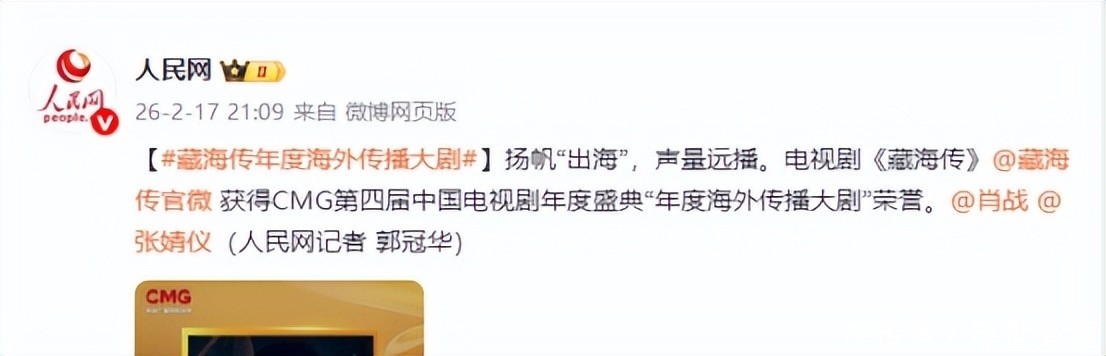 《人民日报》刊文盛赞《藏海传》为新时代文化出海典范,海内外播放数据双双突破平台纪录。