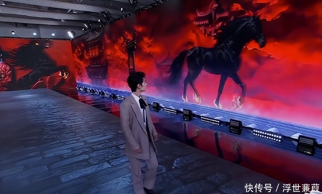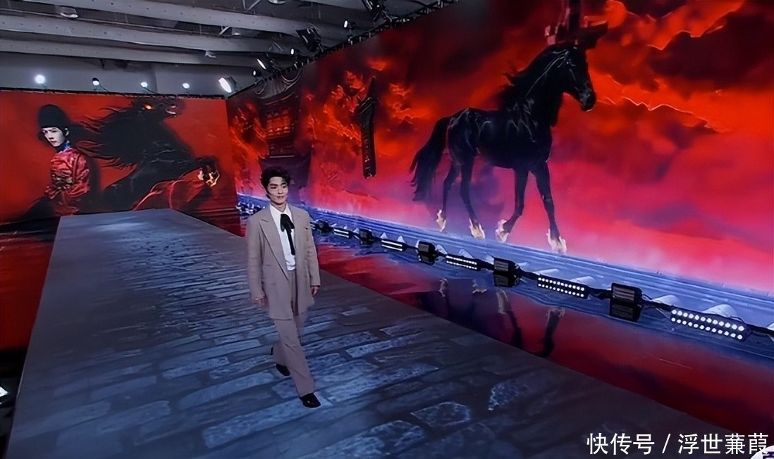 现场以AI生成虚拟战马与艺人同步行进,构建沉浸式叙事空间。