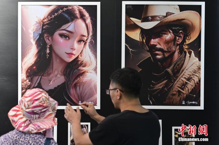 资料图:参观者观看AIGC艺术展。 \n 中新社 \n 记者 田雨昊 摄